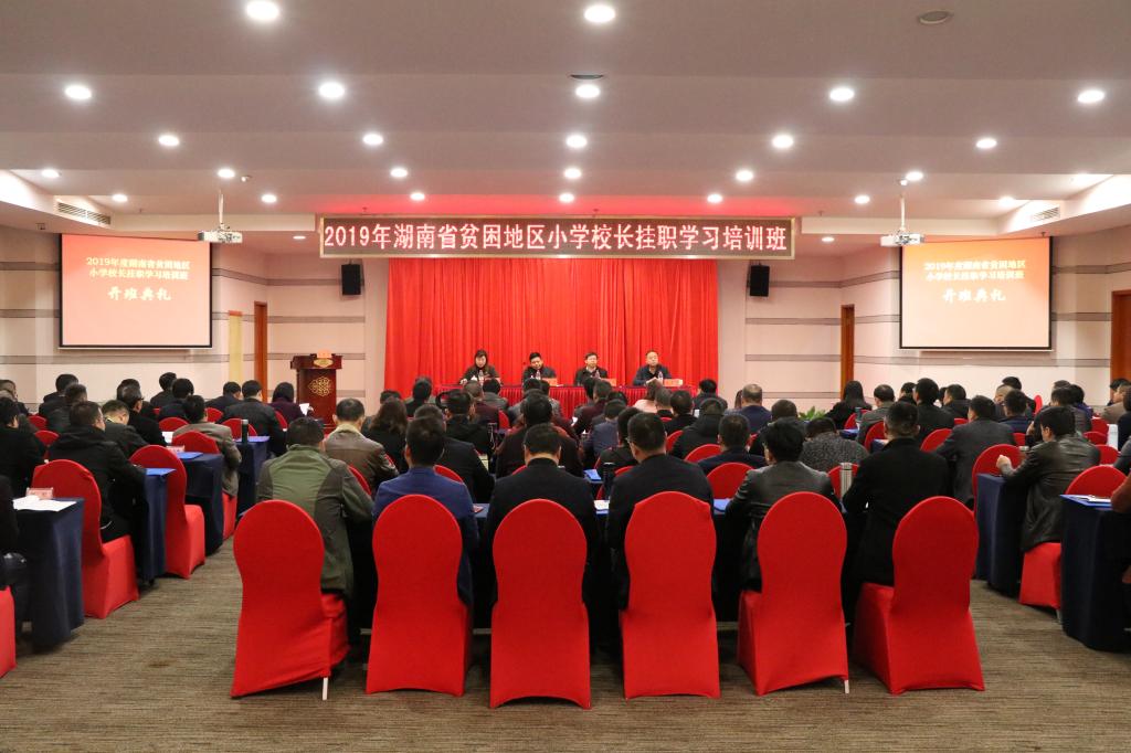 据悉,此次培训班是为深入学习习近平总书记“扶贫先扶智”的重要思想,贯彻全国教育大会精神,根据我省教育扶贫和民族教育工作实际而举办的。培训将持续29天,分四个阶段进行。除在长沙进行为期9天的集中培训外。我校还和国家教育行政学院合作,组织全班前往浙江省宁波市接受7天的集中培训。同时,全体学员将被安排到长沙、株洲和湘潭地区的优质基地校挂职学习11天,并于4月底完成总结交流提升后结业。来自省内51个贫困县(区、市)的100位骨干小学校长参加培训。