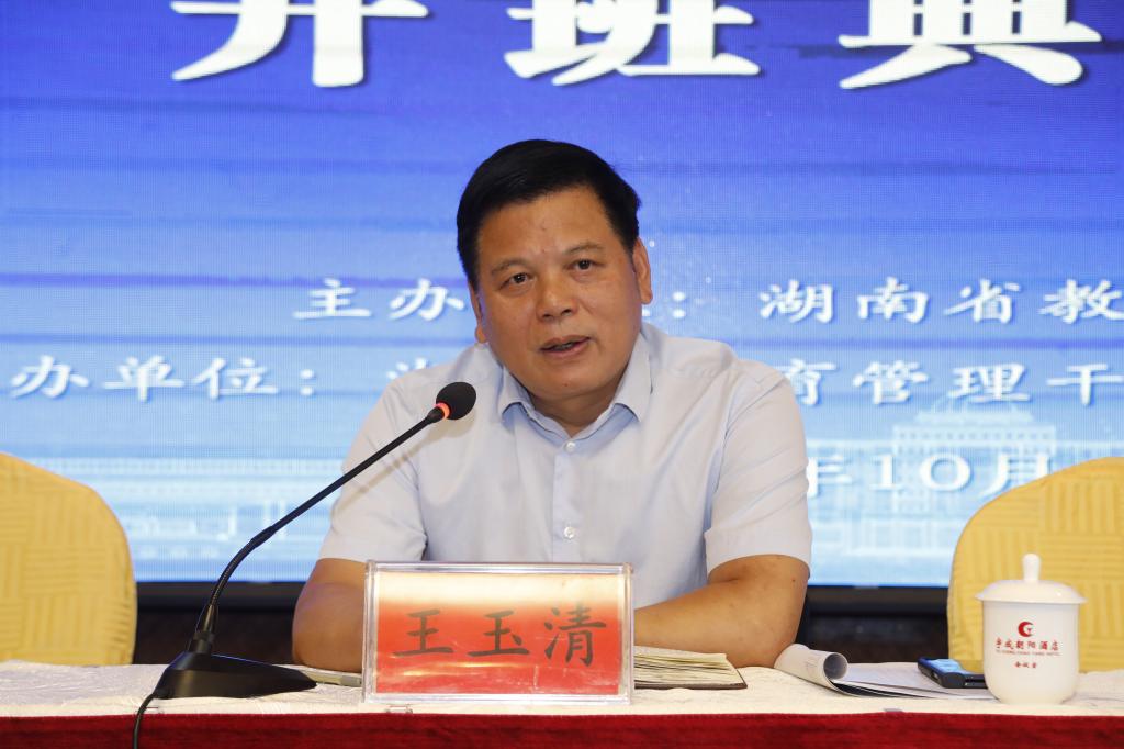 10月10日上午,2021年湖南省乡村高中骨干校长提高培训班在长沙开班。太阳网集团tcy8722党组成员、副厅长、省委教育工委委员王玉清,湖南师范大学党委委员、副校长、博士生导师蒋新苗教授,省教育厅教师工作与师范教育处处长刘奇军,湖南省教育管理干部培训办公室副主任朱常青出席开班典礼。典礼由湖南省教育管理干部培训办公室常务副主任赵巧霞主持。