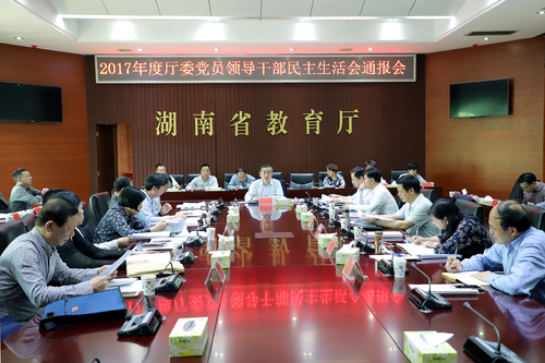 省教育厅机关党委专职副书记王红冰通报了2017年度厅委党员领导干部民主生活会情况。为开好2017年度民主生活会,厅委高度重视、精心部署,根据省纪委和省委组织部的部署要求,把从严从实的要求落实到各个阶段、各个环节。会前,认真做好各项准备工作,扎实组织学习研讨、广泛征求意见建议、深入开展谈心谈话、认真撰写发言提纲,为民主生活会的召开奠定了扎实基础。会中,厅委领导班子认真贯彻整风精神,厅委主要领导同志以身作则、率先示范,直面问题、不遮不掩,带头开展批评与自我批评;其他班子成员既实事求是提出批评意见,又虚怀若谷接受他人批评。真碰硬有辣味、见人见事不遮掩的民主生活会得到了出席会议指导的省委第三巡视组组长张泽军、省纪委第四纪检监察室主任张双春等领导的高度评价。会后,机关党委根据厅党组部署要求,结合会前征求意见情况、班子对照检查材料和民主生活会上查摆的问题,从带头学习贯彻习近平新时代中国特色社会主义思想、认真贯彻执行党中央决策部署和上级党委决议决定、对党忠诚老实、主动担当负责、持续用力纠正“四风”、严格执行廉洁自律准则等6个方面梳理出35个具体问题,拟定了民主生活会问题整改任务书,经党组会研究通过后印发各有关部门(单位)。